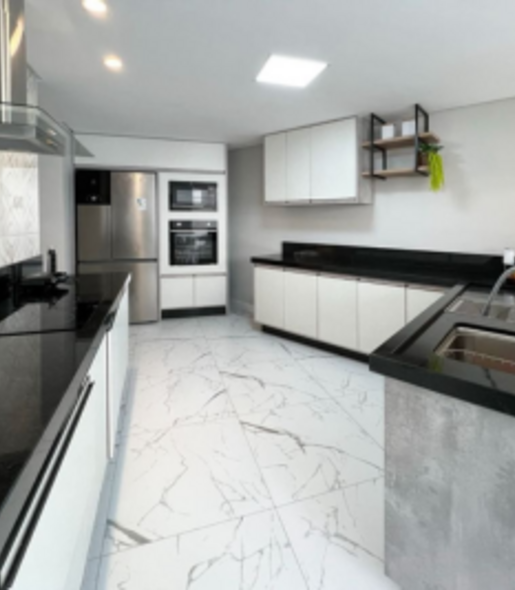 Um granito preto uniforme, altamente resistente a riscos e manchas. Ideal para local com alta utilização e superfícies que exigem resistência e facilidade de manutenção.